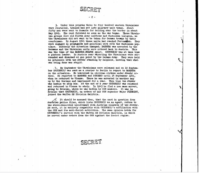 З архіву ЦРУ. Доповідь про взаємодію Абвера та українських націоналістів (згадується про те, що це відбувалося таємно від СС, СД та навіть НСДАП).