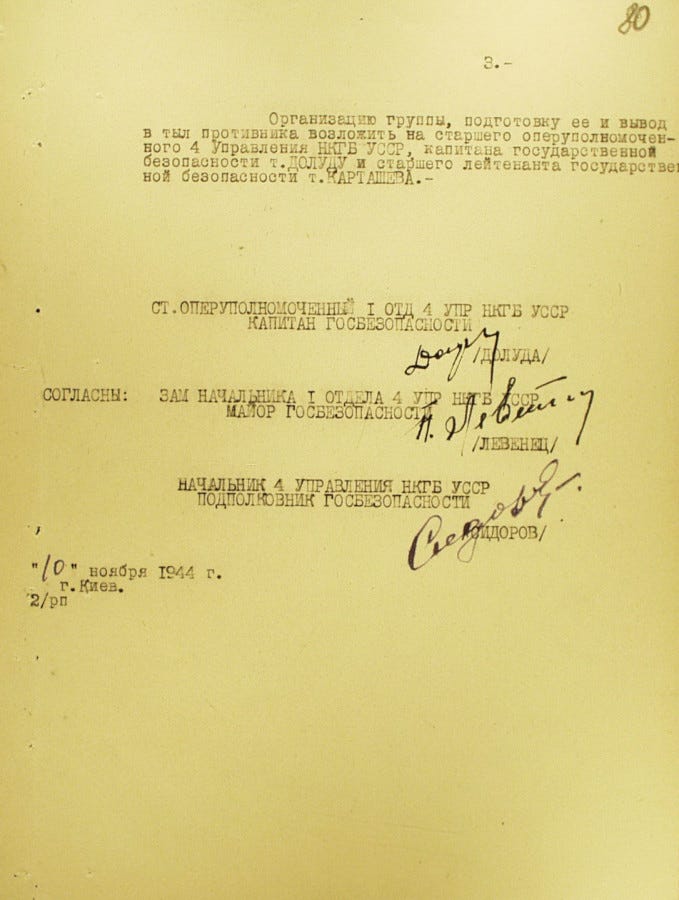 З архівів КДБ. Документ про підготовку операції з кодовою назвою "Овід" для вбивства Степана Бандери у Берліні. Листопад-грудень 1944 року.