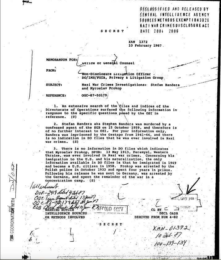 З архіву ЦРУ. Доповідь про те, що Степан Бандера не причетний до воєнних злочинів нацистів.