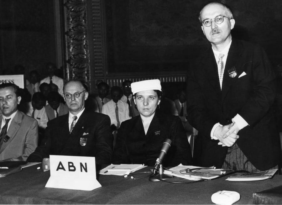 Антібільшовицький Блок Народів (АБН). Ярослав Стецько (стоїть праворуч) його дружина Слава (сидить ліворуч).